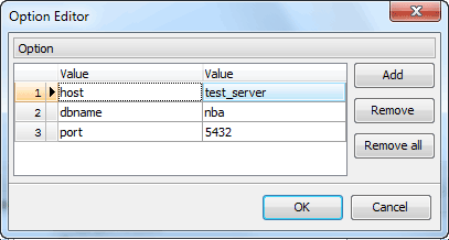 | • | specify options of this table in the Create Foreign Server Wizard. |