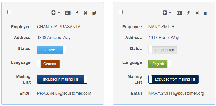 - Support for Toggles has been implemented. This control allows to represent logical column values in a comfortable view and to change them in one mouse click directly in data grid and cards. Text, size and style of toggles are customizable.