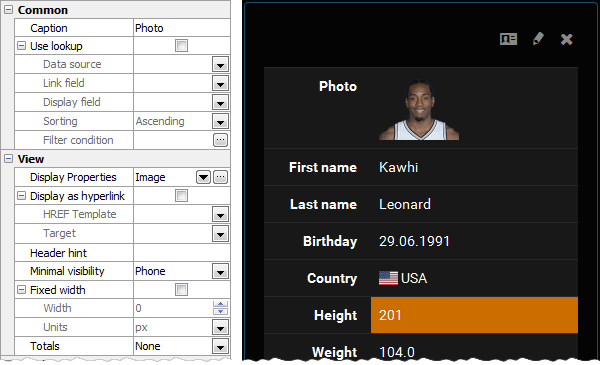 This control allows you to represent BLOB data stored in the database as images. For images stored outside of the database the External Image control should be used. If the Setup binary fields as image option is turned ON, this control will be automatically selected for all the BLOB columns.
