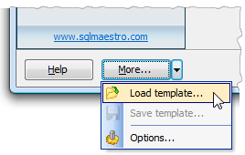 DB2 Data Wizard allows you to save and restore all options set during a wizard session. You need not to specify all session parameters each time you work with a wizard anew; instead you can load all settings from a template and change them if necessary. To create a template, walk through the wizard and click More > Save Template at the last step. All the settings you have made will be saved to a file. To restore previously saved settings from a template, click More > Load Template at the first wizard step.