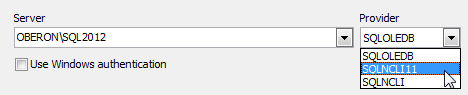 The table below shows the correspondence between the value selected in the Provider combobox and SQL Server client to be used.
