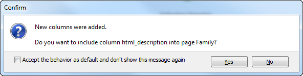 Refreshes the database schema. If a new column detected in a page data source, PHP Generator for MySQL asks you whether you want to include that column into the page. This behavior can be specified in the Application Options dialog.