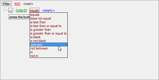 Next, you need to specify the range values for the selected operator. The editor used in value boxes is determined by the editor type assigned to the corresponding column.